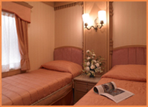 . Every cabin is equipped with Wi-Fi, LCD television, DVD with 6 satellite channels, wardrobe, vanity/writing desk and private bathroom with luxurious amenities and accessories.